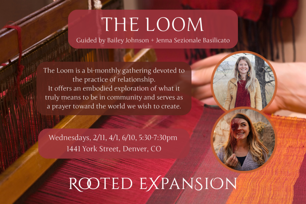 The Loom, a bi-monthly gathering hosted by Rooted Expansion stewards Bailey Johnson and Jenna Sezionale Basilicato, is a devoted to the practice of relationship.
